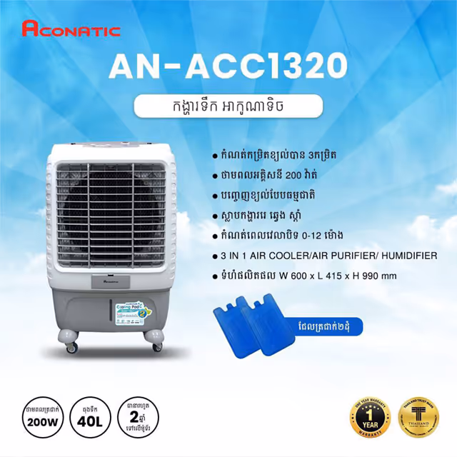 Aconatic 40L 3 IN 1 Air Cooler, Air Purifier, Humidifier 200W AN-ACC1320