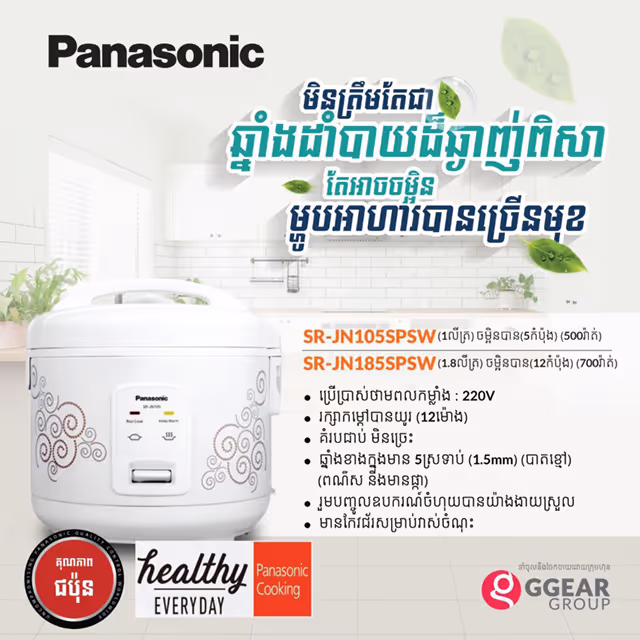 Panasonic 1L Electric Rice Cooker 500W SR-JN105SPSW 3កំប៉ុង