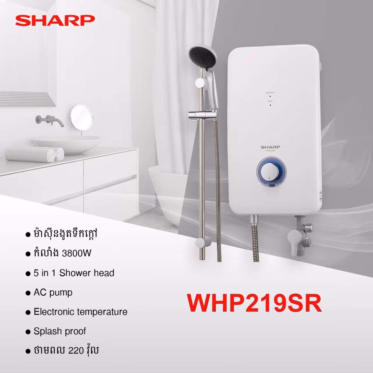 SHARP 5 in 1 SHOWER HEAD HOT SHOWER WITH AC PUMP WHP219SR